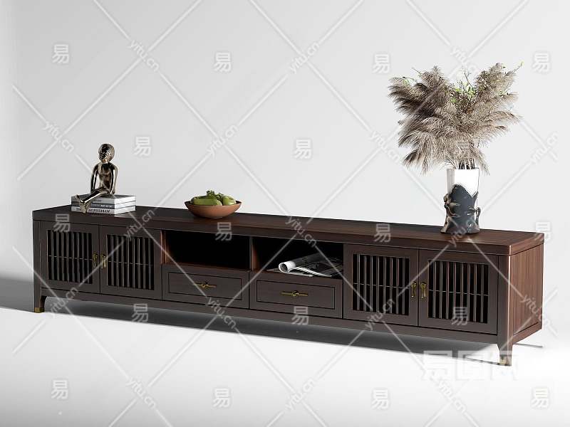 新中式电视柜3D模型下载