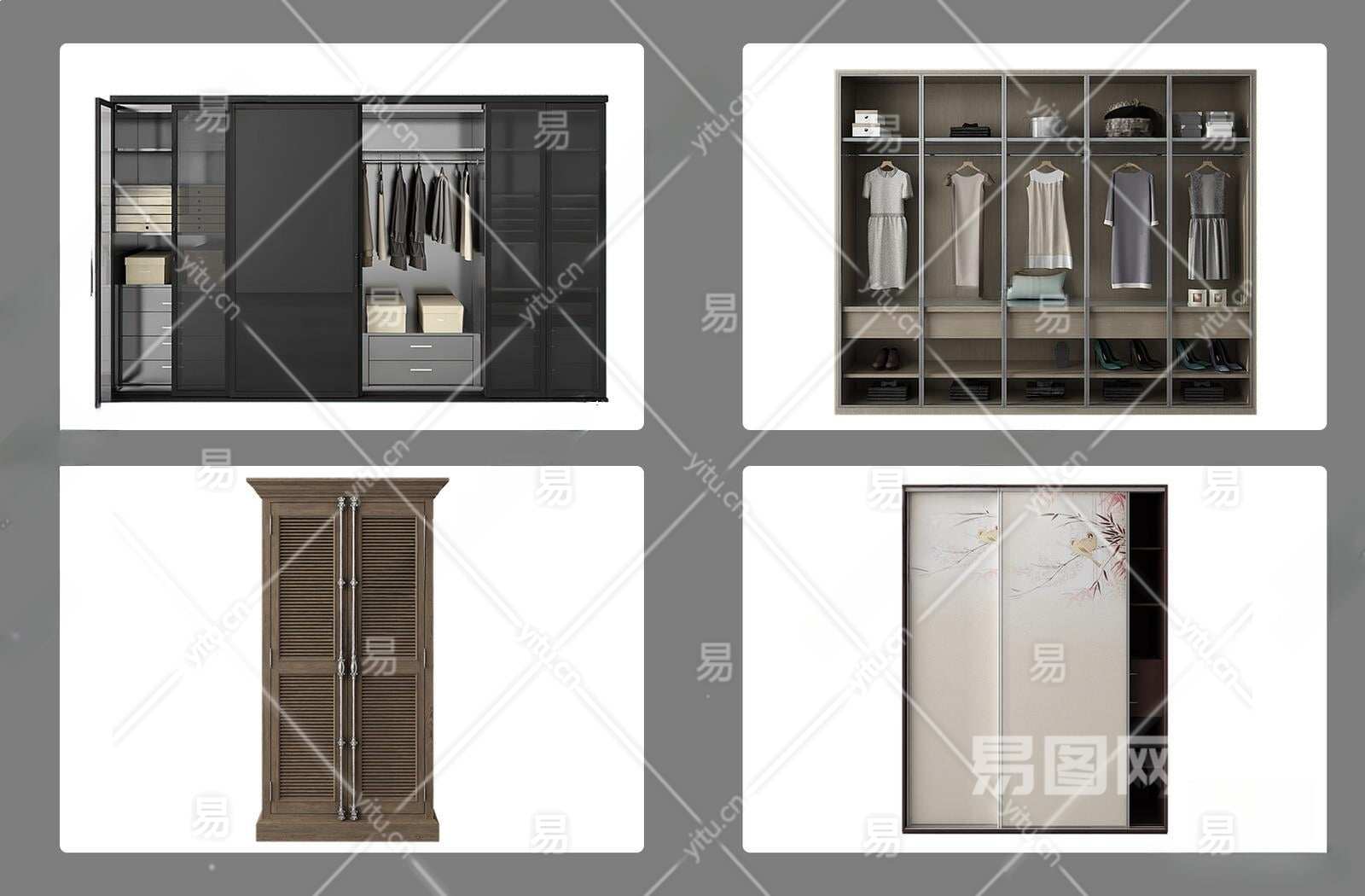 简欧衣柜组合3D模型下载
