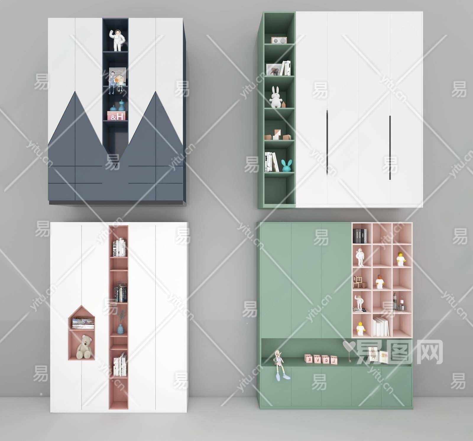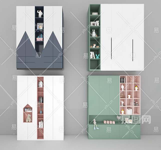现代儿童衣柜组合3D模型下载