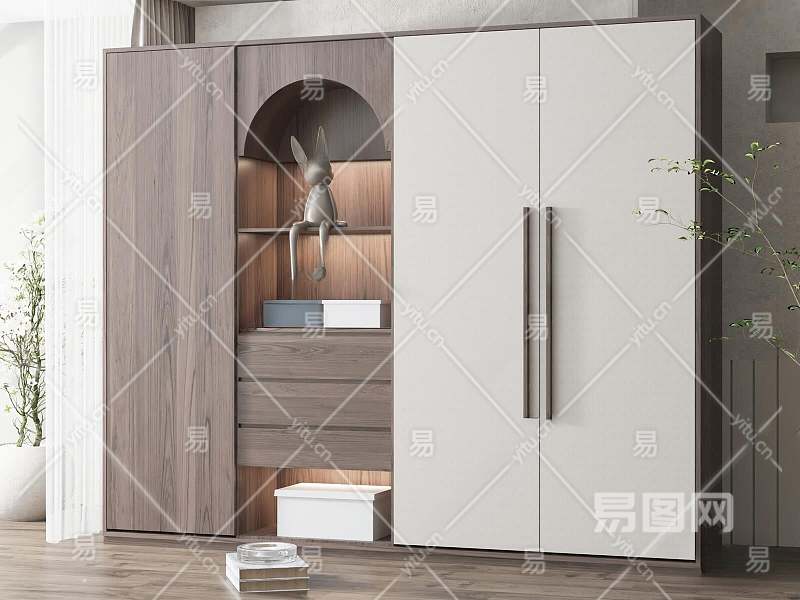 现代实木衣柜3D模型下载