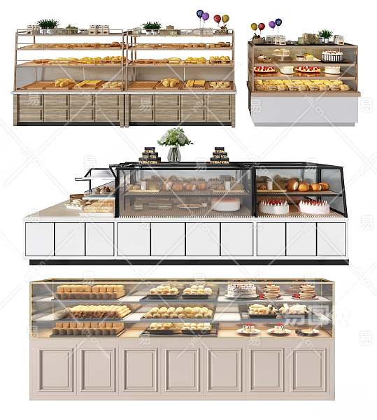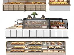 现代蛋糕面包玻璃展柜组合3D模型下载
