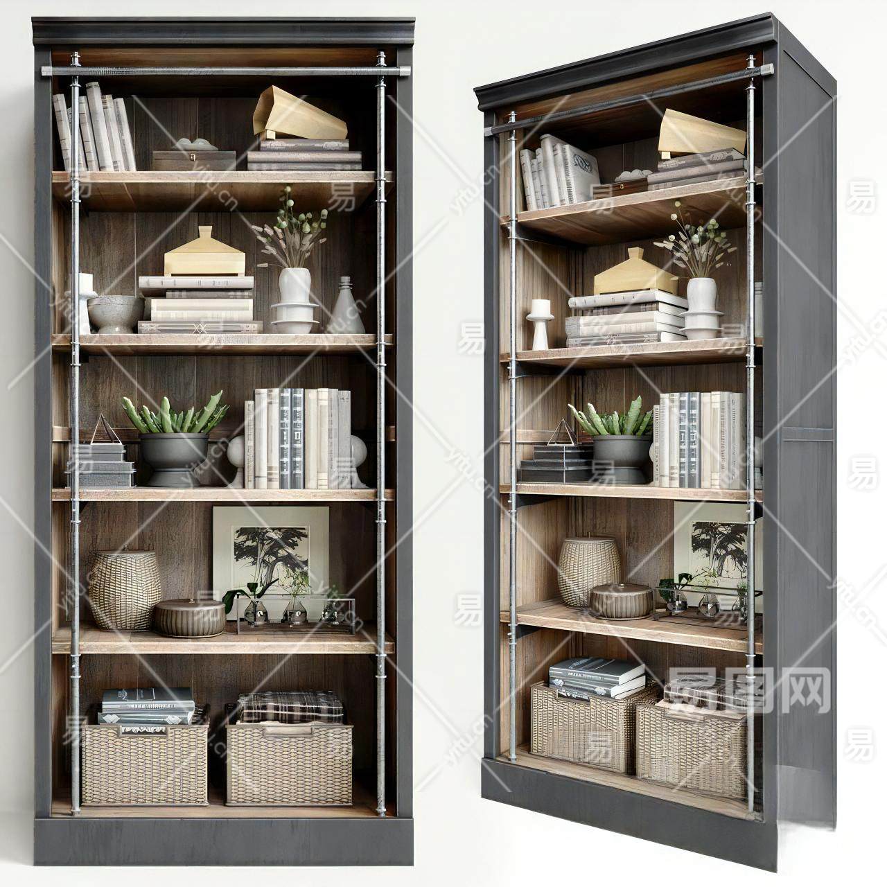 现代装饰柜 陈列柜 装饰品 篮子 书