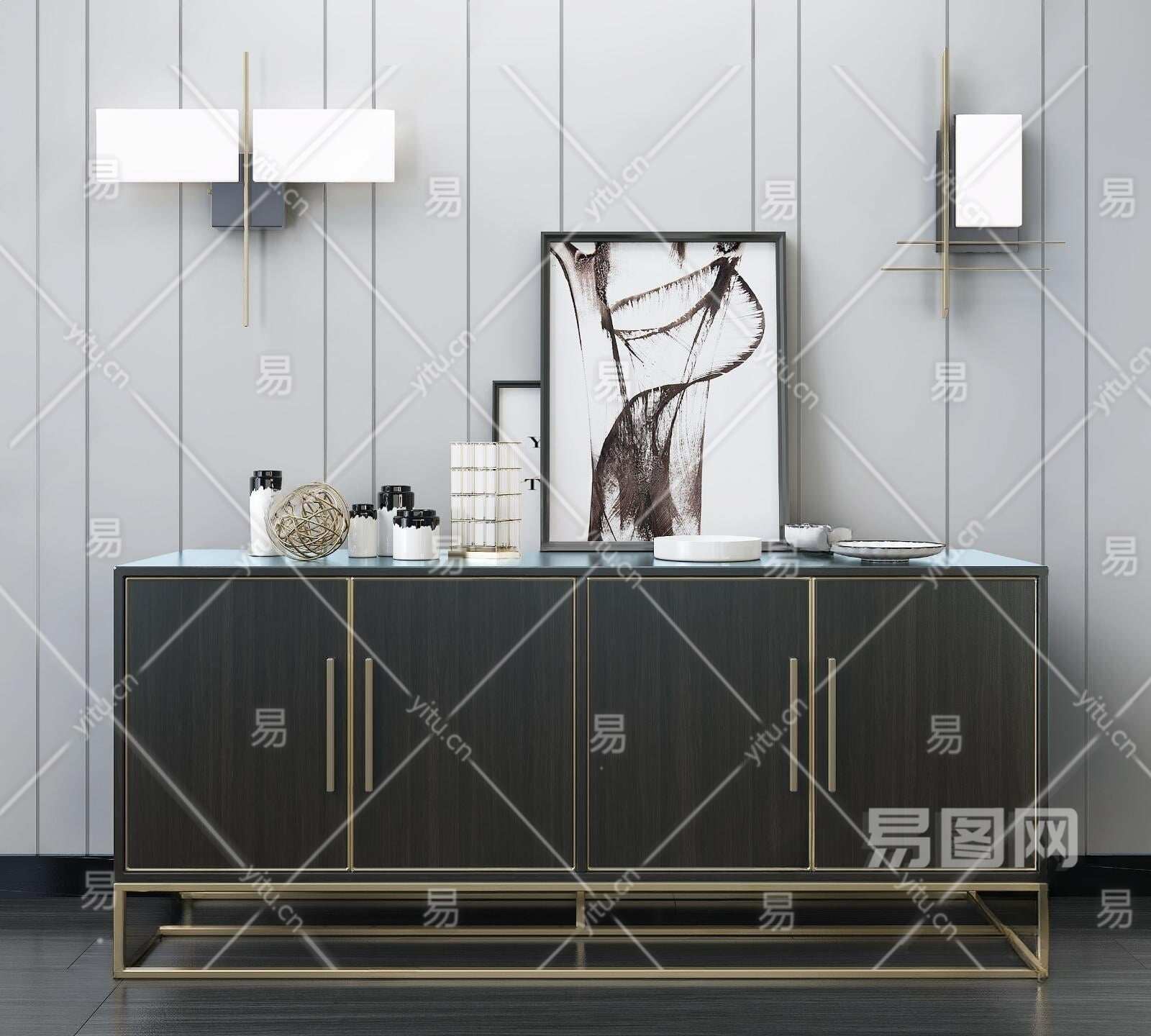 新中式轻奢装饰柜3D模型下载