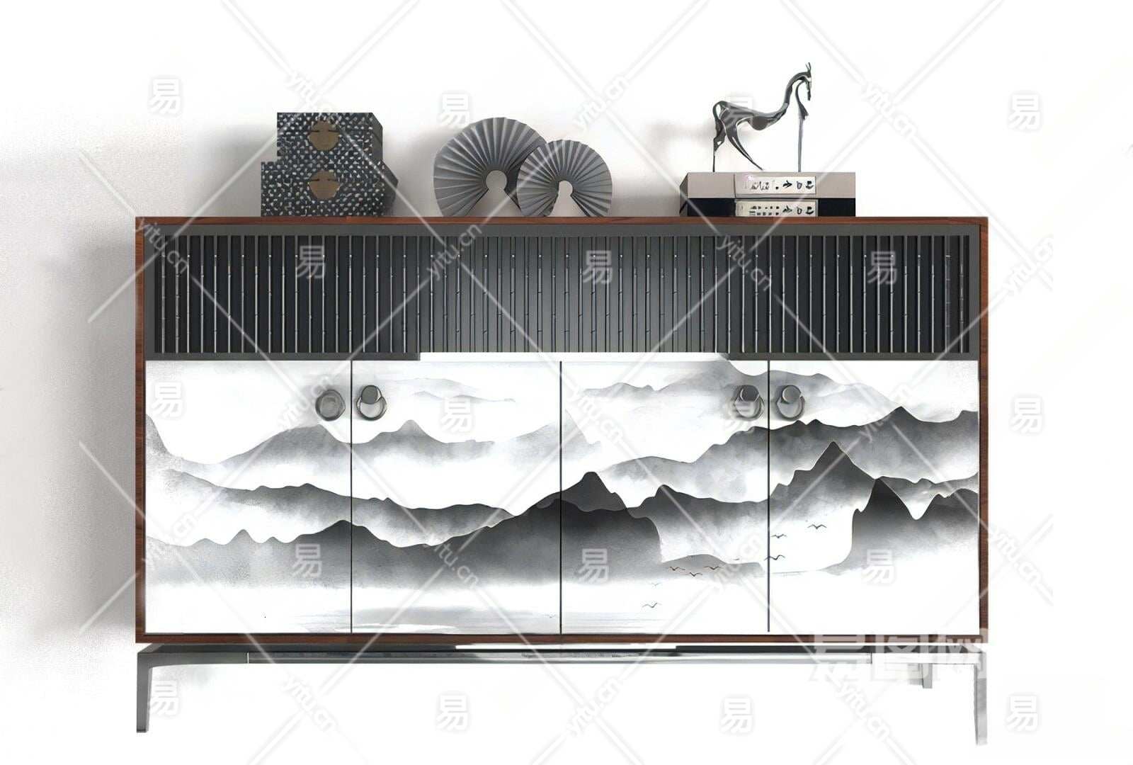 新中式装饰柜3D模型下载