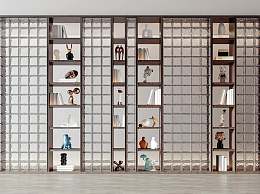 现代实木隔断玻璃砖装饰柜3D模型下载