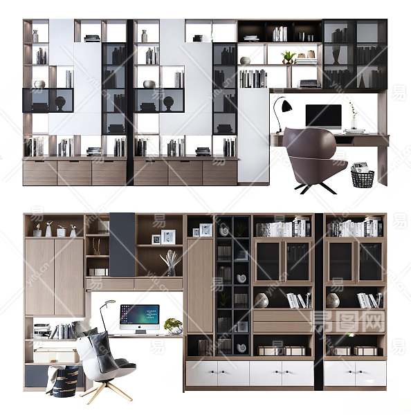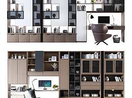 现代书房一体柜组合3D模型下载