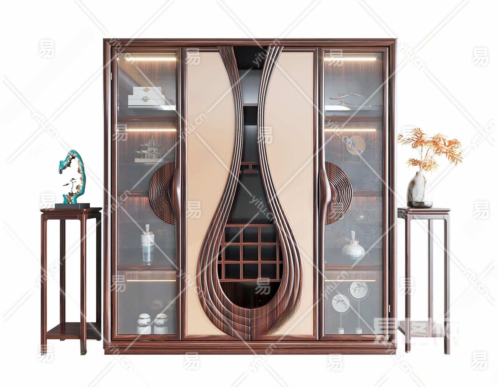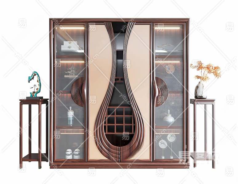 新中式装饰柜3D模型下载
