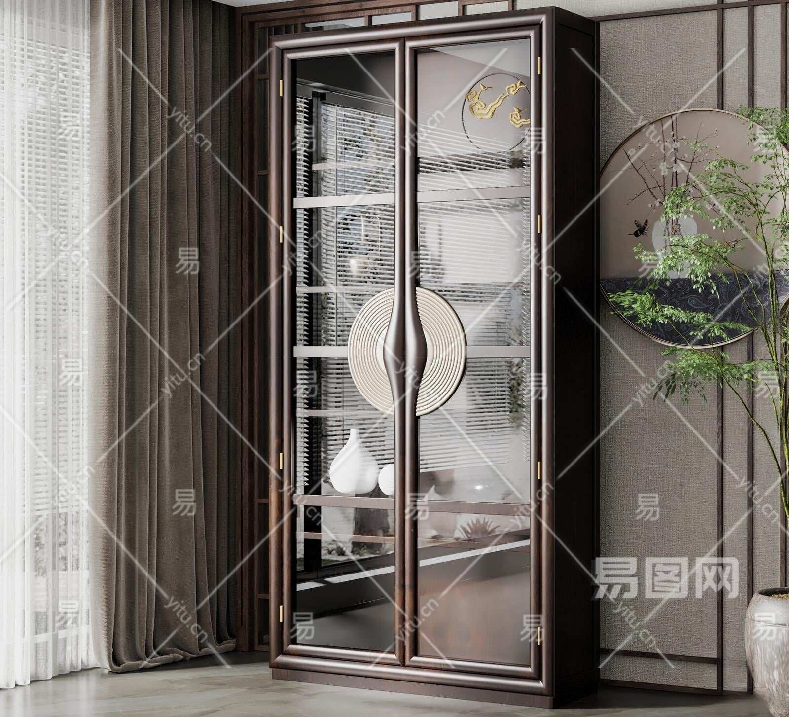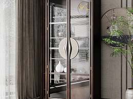 新中式玻璃门装饰柜3D模型下载