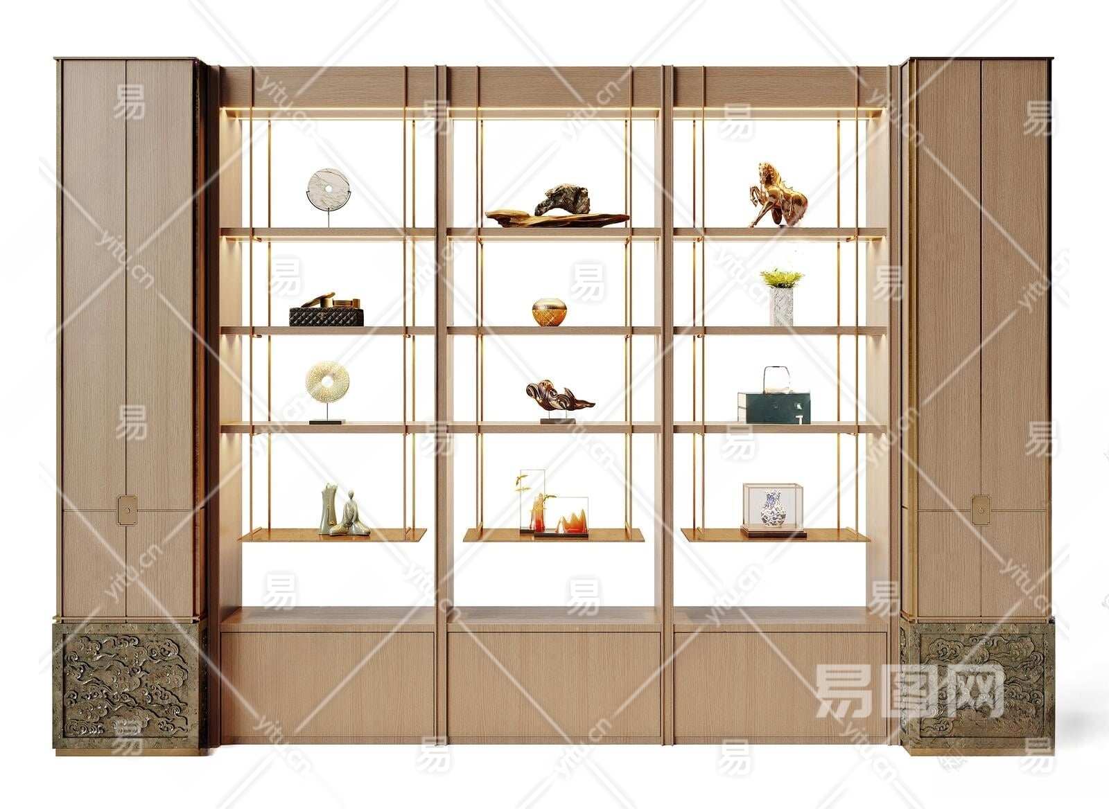 新中式装饰柜3D模型下载