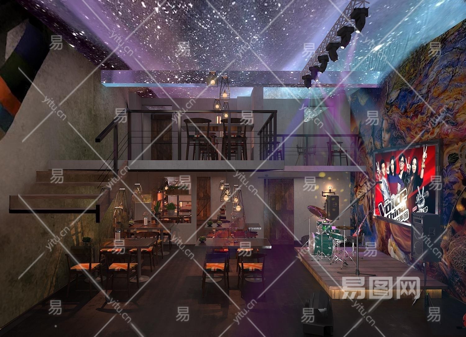 工业风酒吧3D模型下载