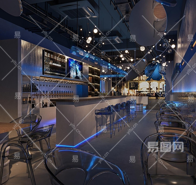 工业风酒吧3D模型下载