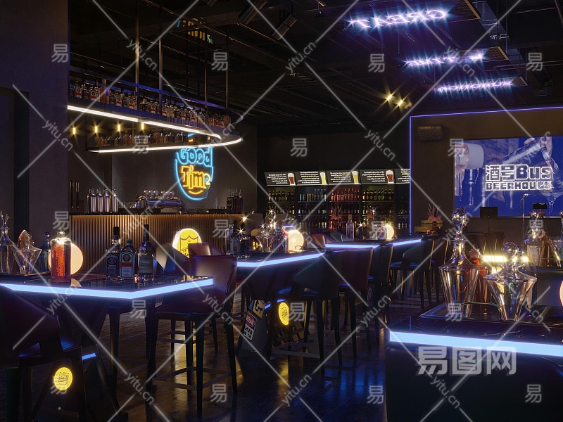 工业风酒吧3D模型下载