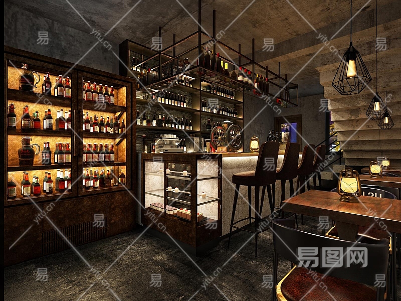 工业风酒吧3D模型下载
