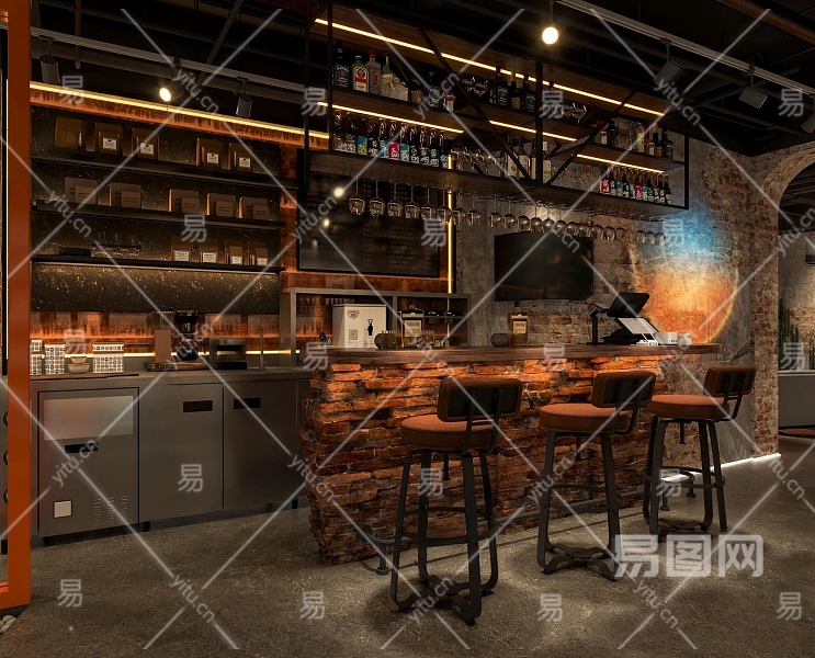 工业风酒吧3D模型下载