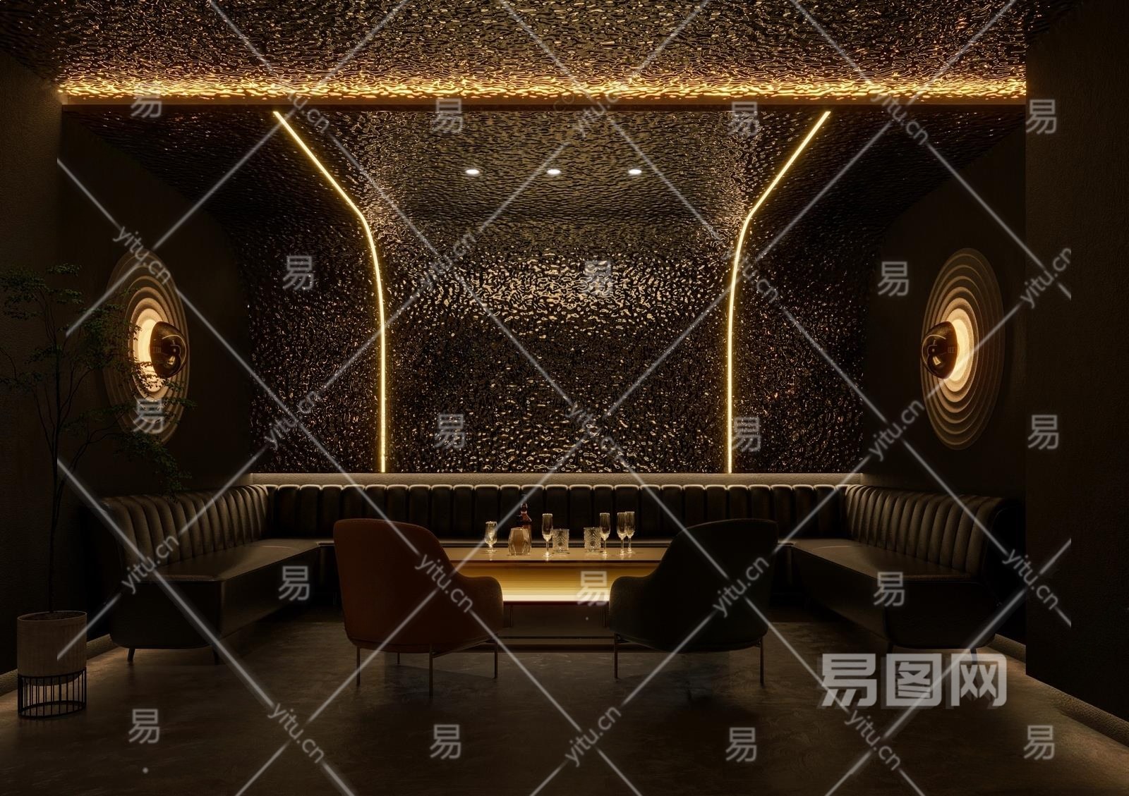 现代酒吧包厢3D模型下载