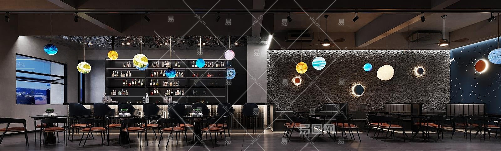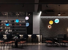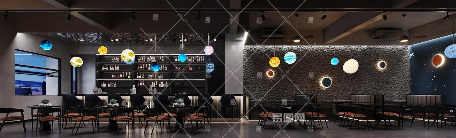 1107528479现代酒吧休闲桌椅酒柜星球灯月球吧台吧椅艺术吊灯门头模型