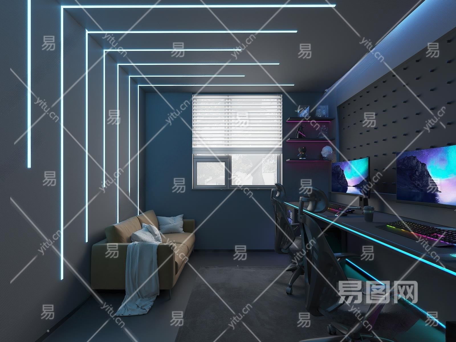 现代电竞房3D模型下载