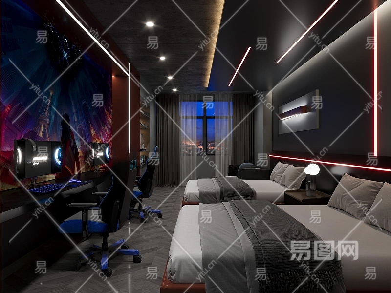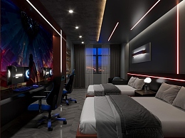 现代电竞酒店客房3D模型下载