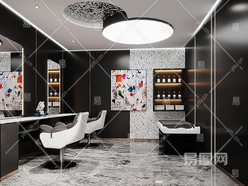 现代美发店3D模型下载