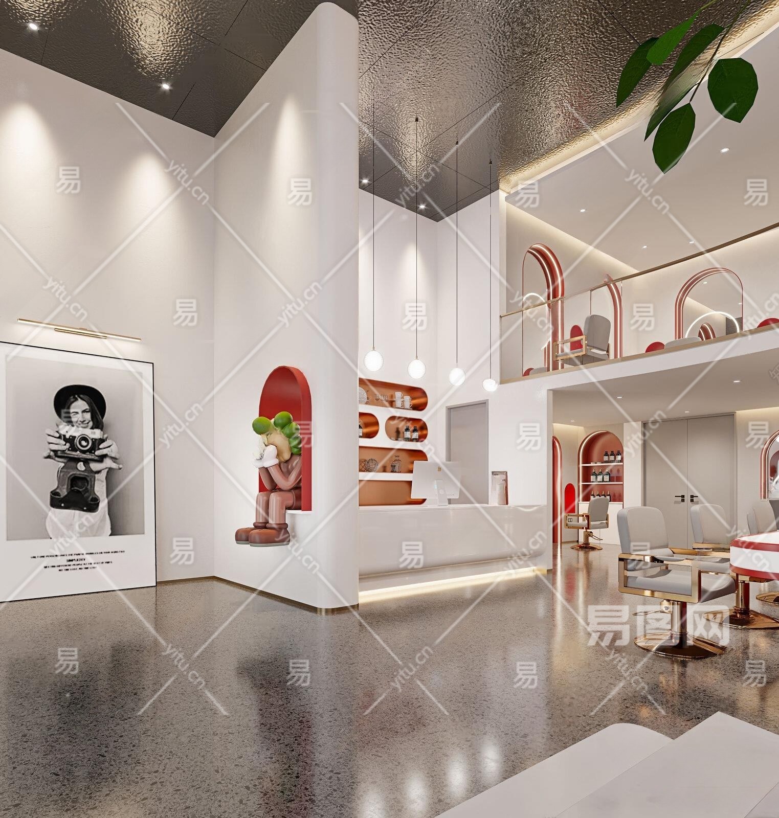 现代美发店3D模型下载