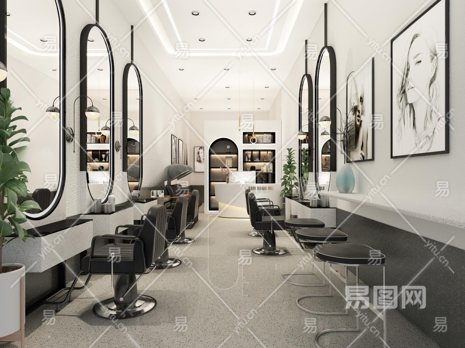 现代简约理发店3D模型下载
