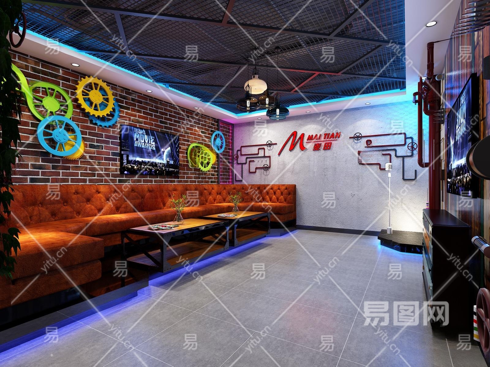 工业风KTV包间3D模型下载