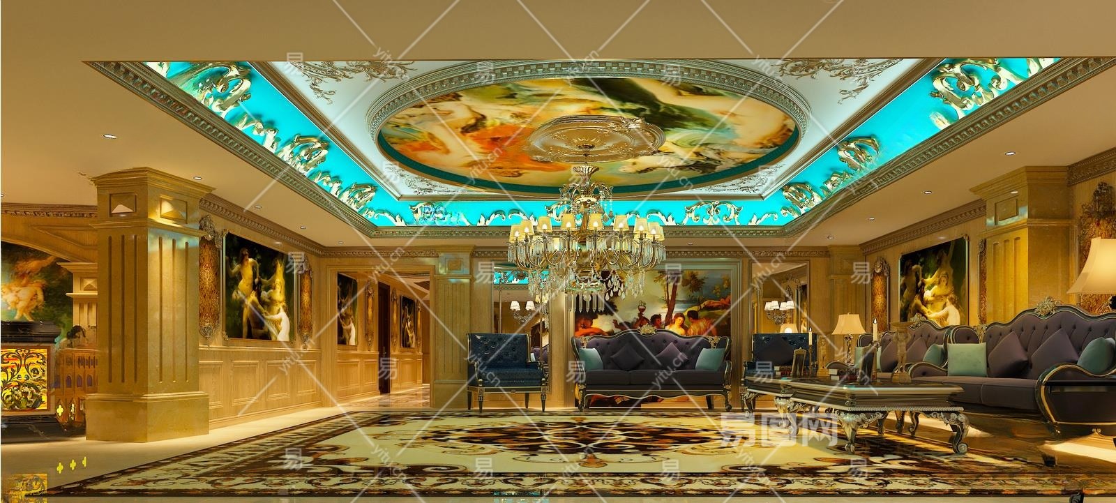 欧式古典KTV会所大厅3D模型下载