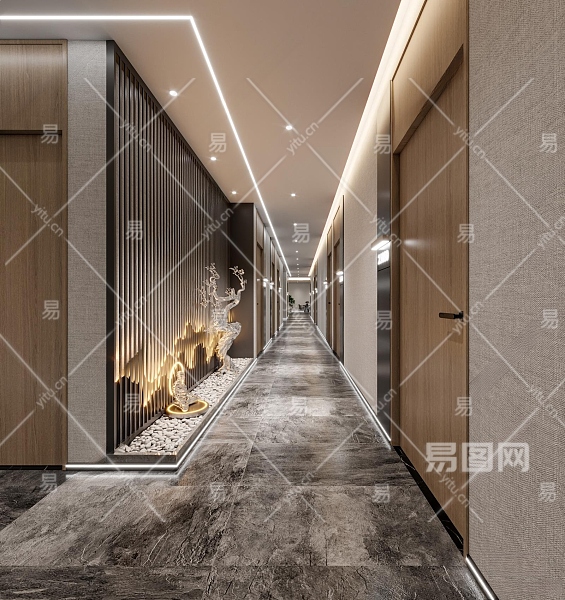 现代美容SPA店过道3D模型下载