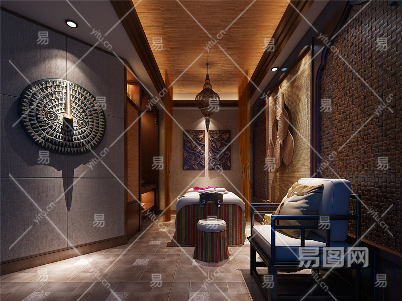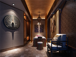东南亚 美容院按摩房 艺术吊灯 沙发桌椅 墙面挂件