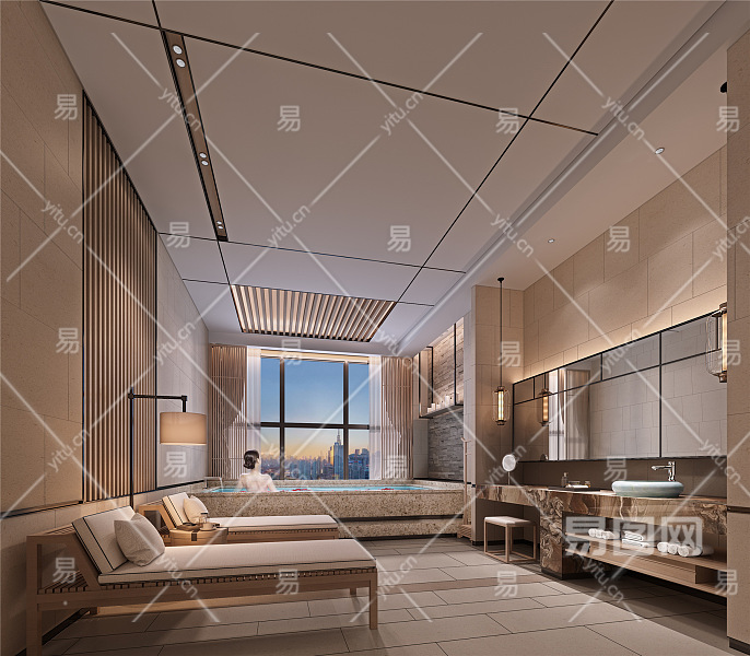 现代美容院 沙发桌椅 艺术落地灯 梳妆台 壁灯 浴缸