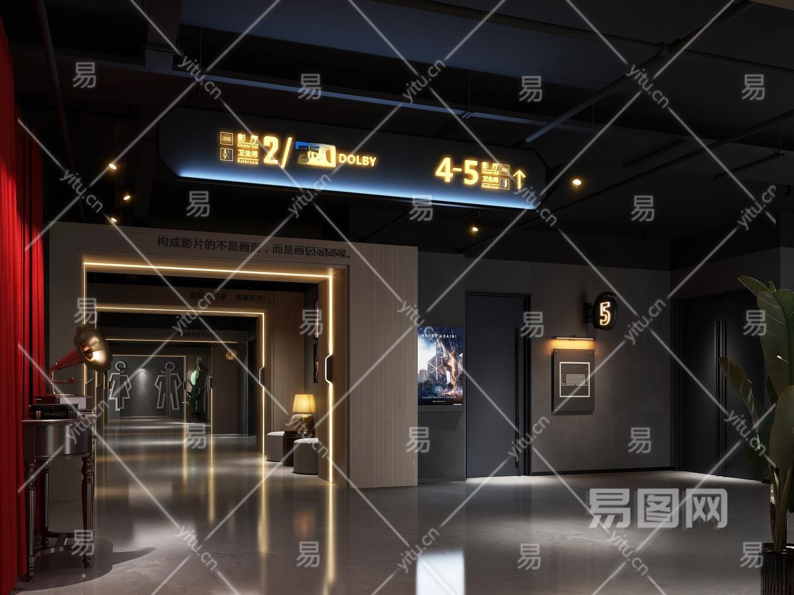 现代电影院门厅3D模型下载