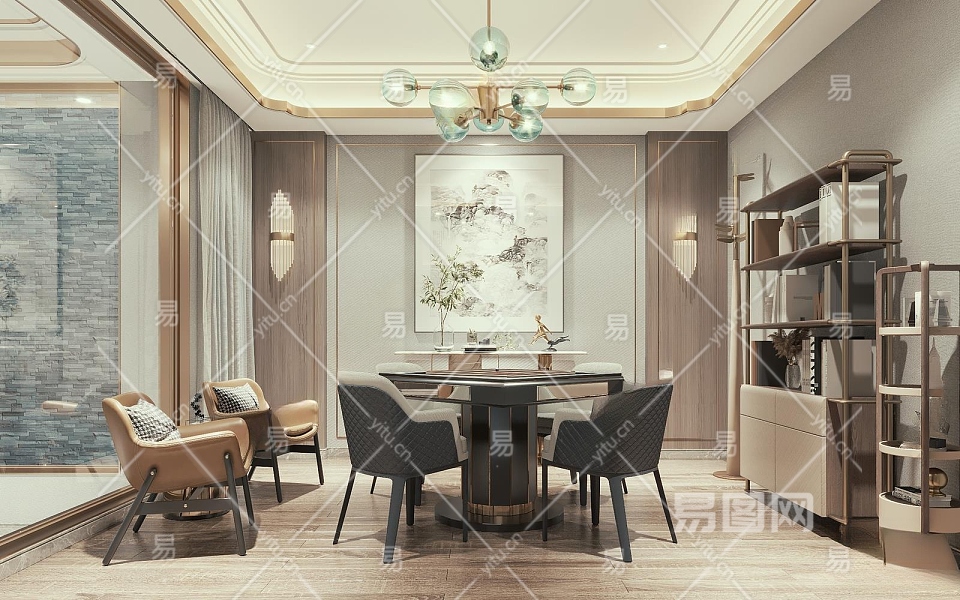 材质CR材质 贴图有贴图 灯光CR灯光 风格新中式