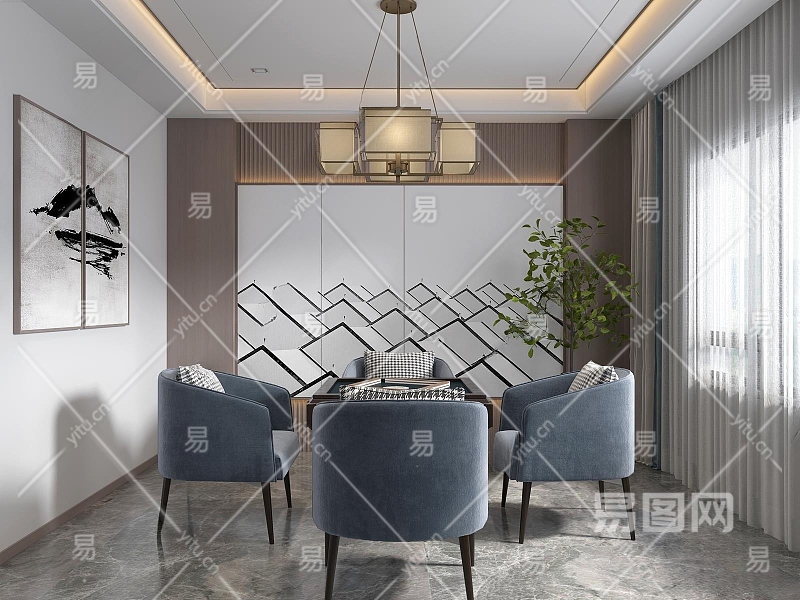 新中式棋牌室3D模型下载