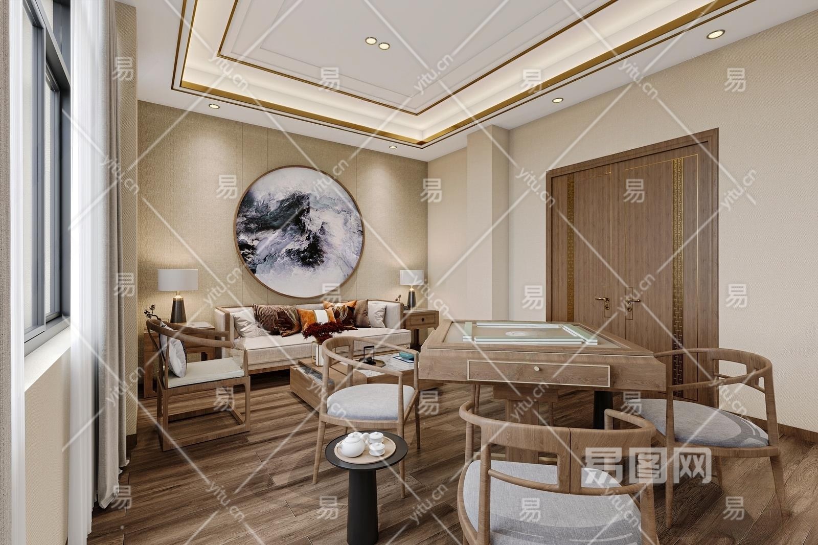 新中式棋牌室3D模型下载