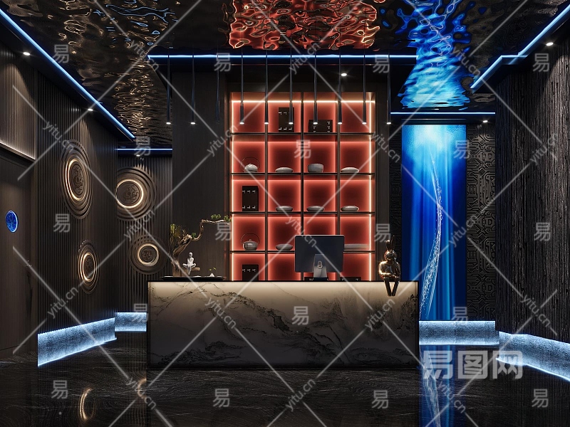 新中式洗浴中心前台3D模型下载