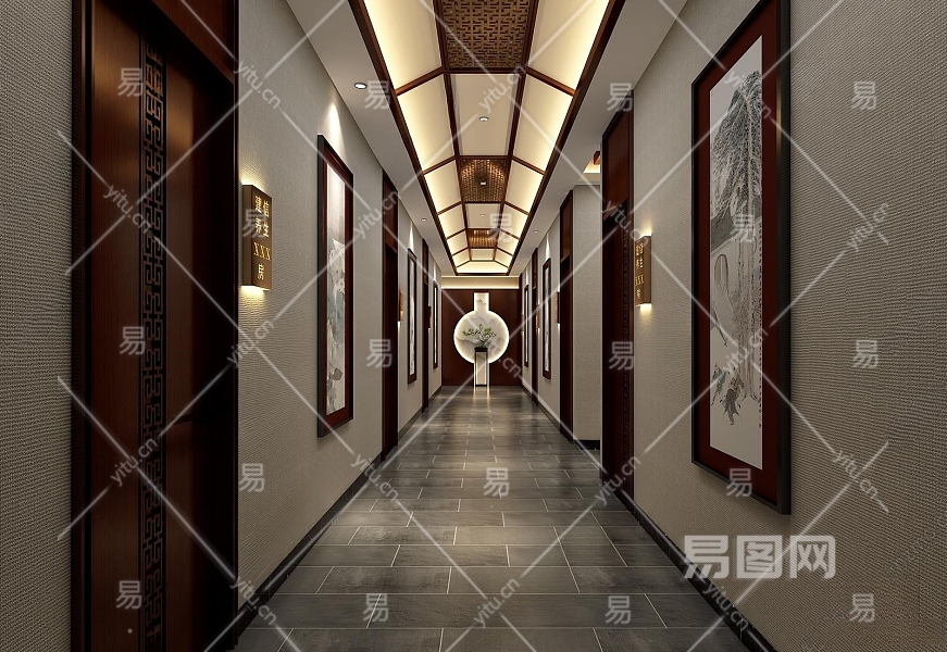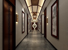 新中式洗浴中心走廊过道3D模型下载