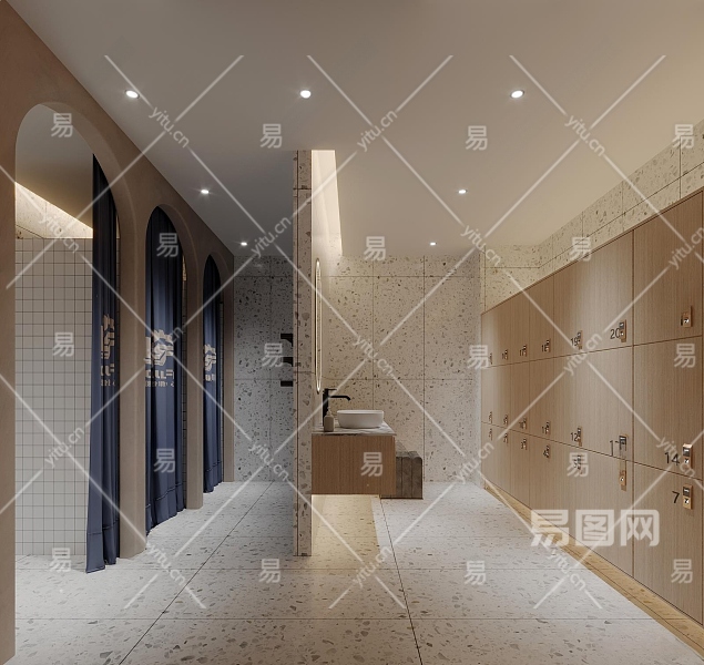 现代洗浴中心公共浴室3D模型下载