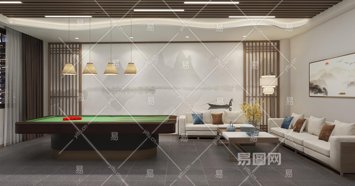 新中式桌球室3D模型下载