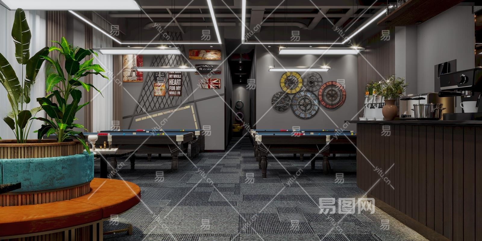 工业风台球室3D模型下载