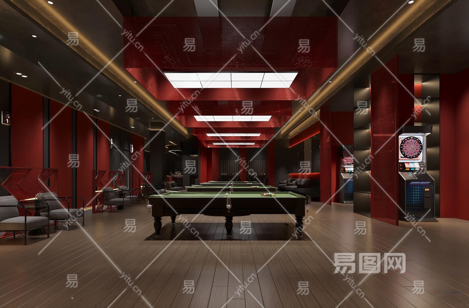 工业风台球室3D模型下载