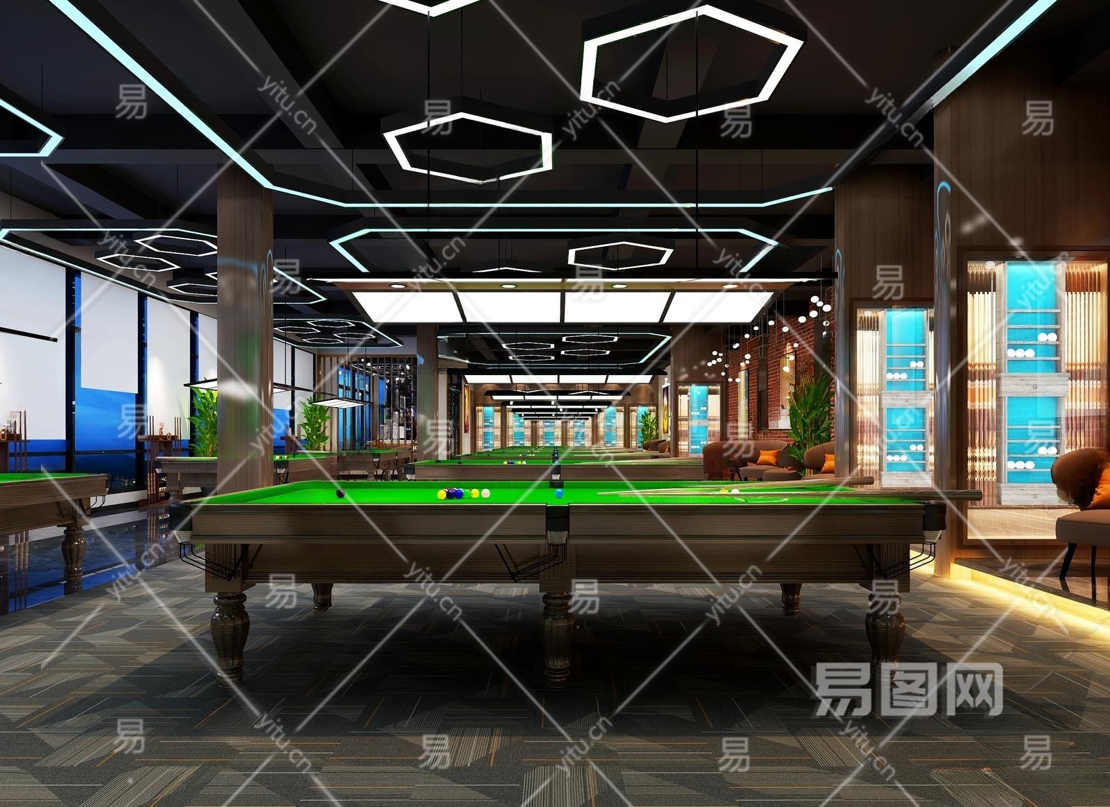 工业风台球厅3D模型下载