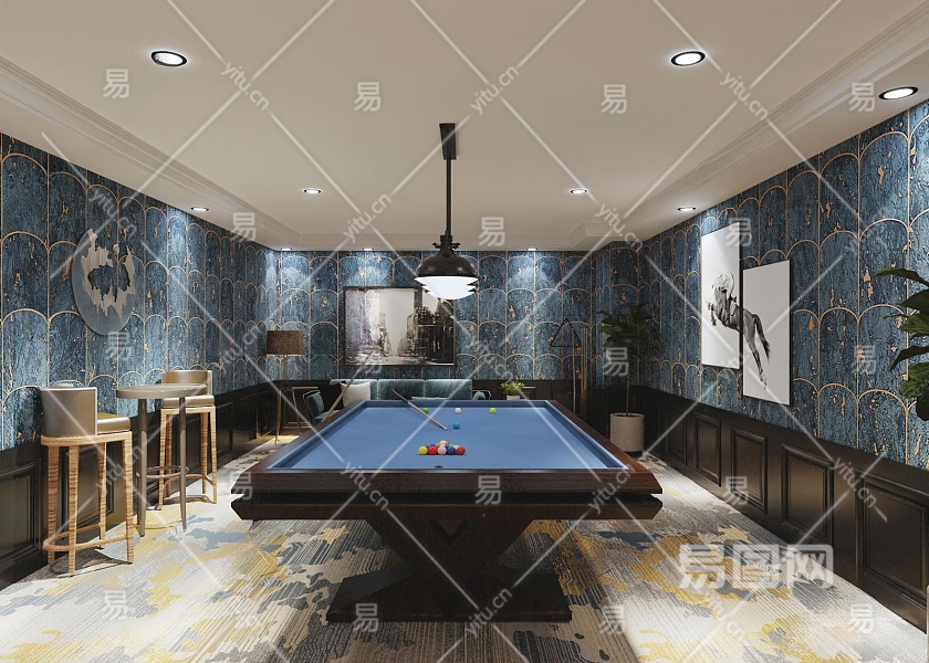 欧式古典桌球室3D模型下载