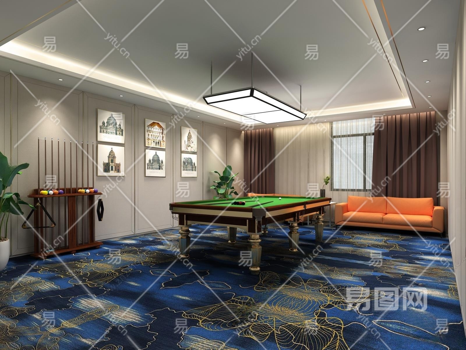 现代台球室3D模型下载