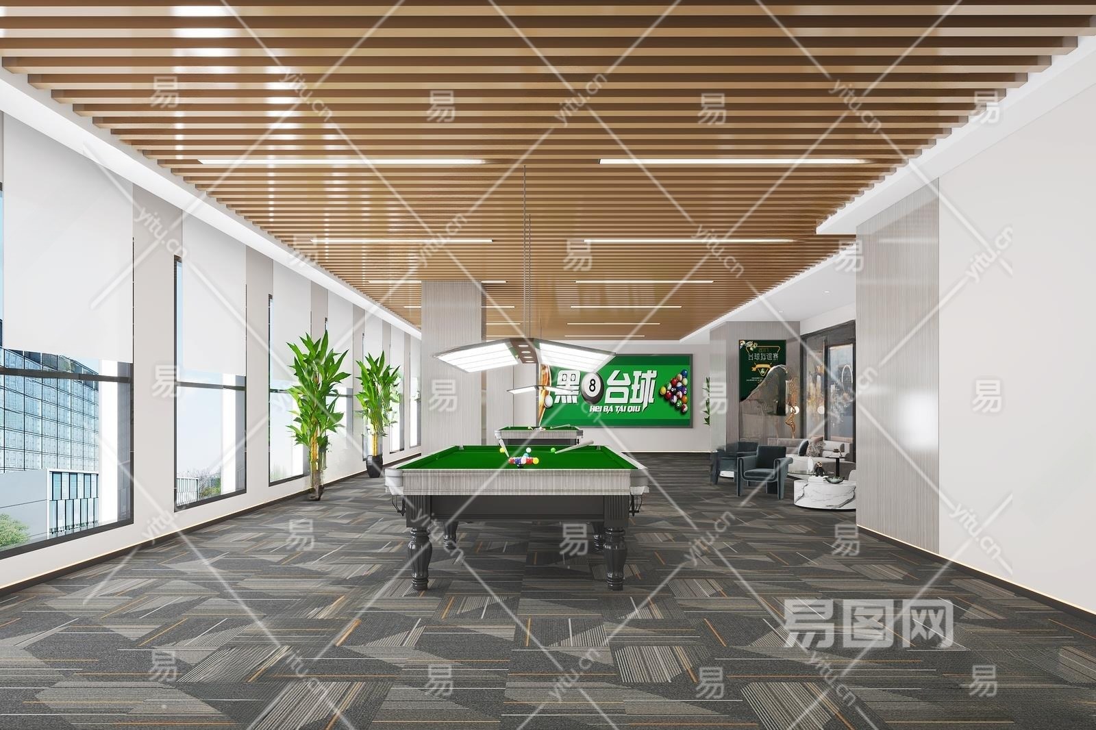现代台球室3D模型下载