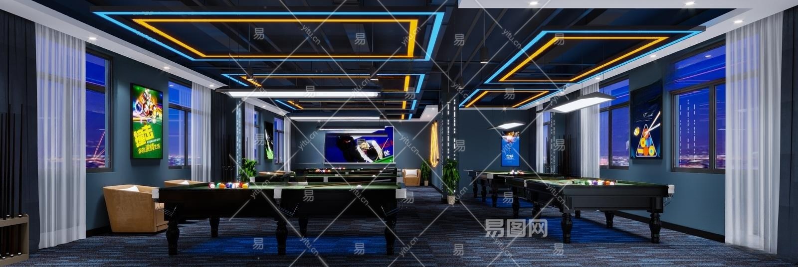 现代台球厅3D模型下载