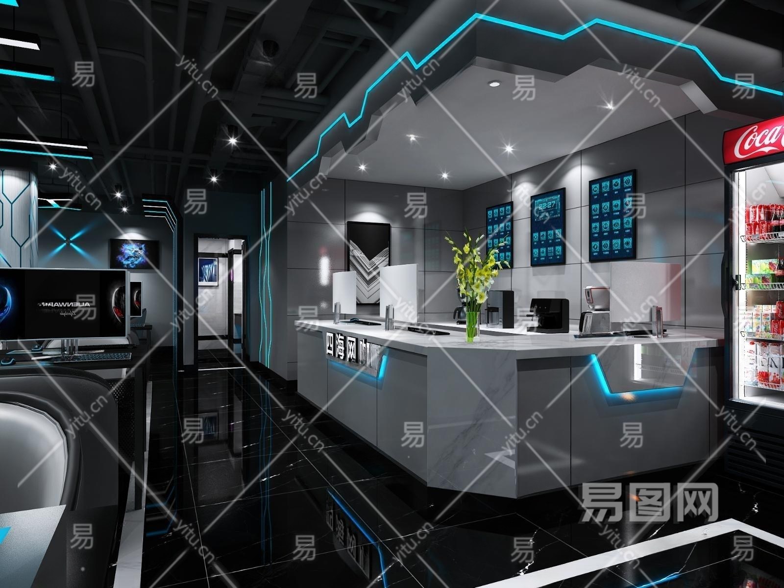工业风科技感网咖网吧3D模型下载