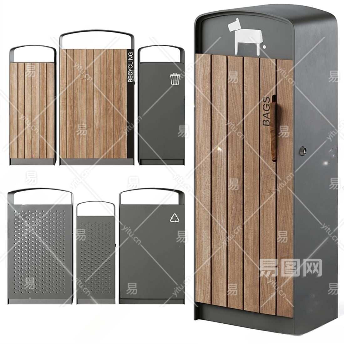 现代公用垃圾桶3D模型下载