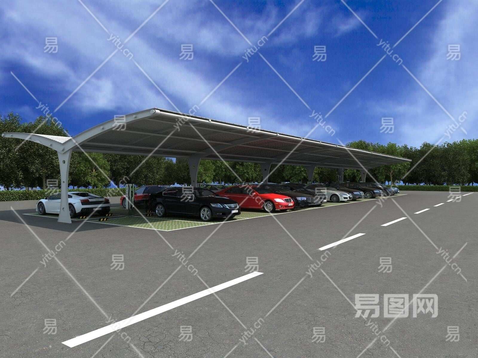 现代车棚3D模型下载