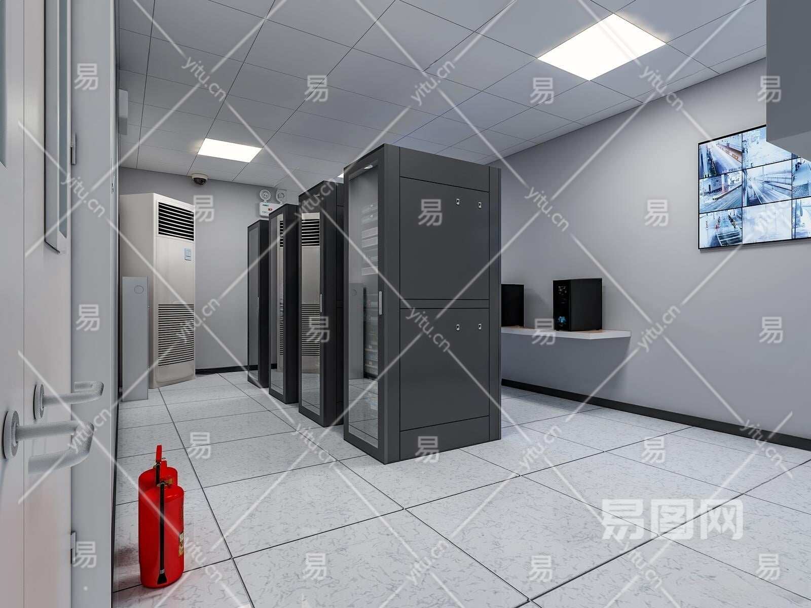 现代服务器机房3D模型下载