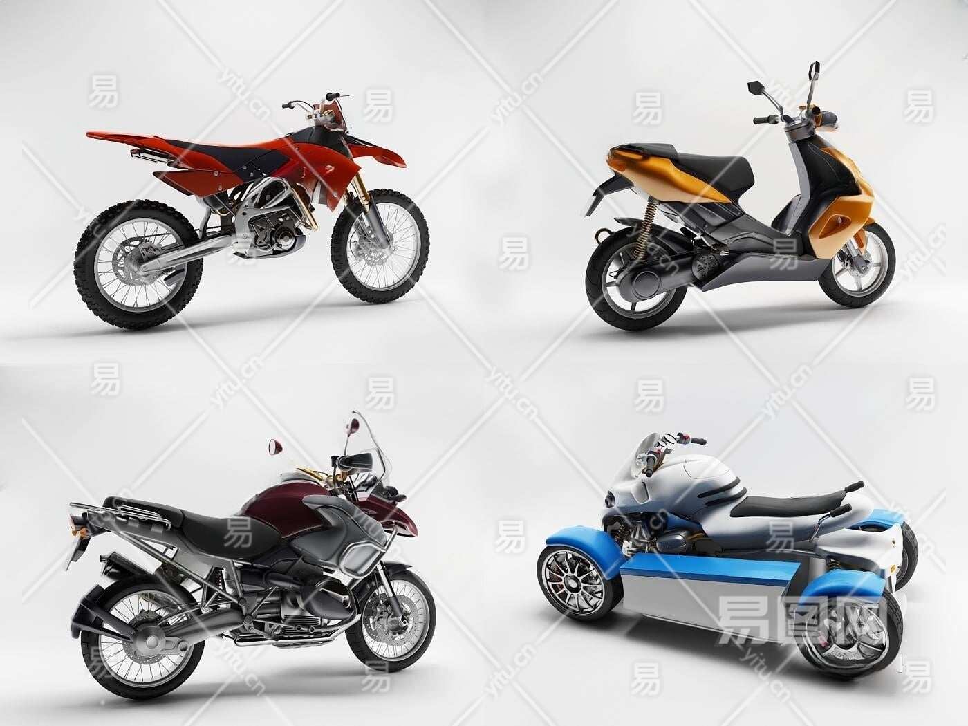 现代精品摩托车电动车组合3D模型下载